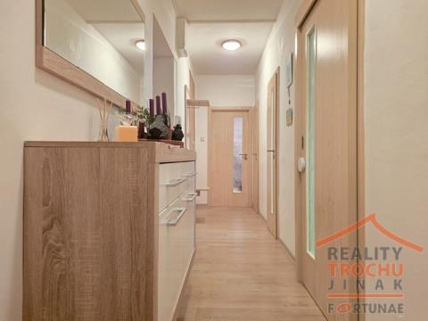 Nabízíme k prodeji kompletně zrekonstruovanou bytovou jednotku 3+kk v obci Moravany. Velice vkusná rekonstrukce proběhla pouze z kvalitních a moderních materiálů. Moc hezký byt je v osobním vlastnictví v ulici Jasmínová a prodává se i se zařízením (v případě zájmu). Má podlahovou plochu 72 m2 a je umístěn ve 2. podlaží cihlového domu, který je po revitalizaci, včetně nového zateplení. V bytě se nachází kuchyňská linka zhotovená na míru včetně vestavěných spotřebičů. Myčka v prostorné komoře na potraviny vedle kuchyně. Dva samostatné neprůchozí pokoje. Vyzděná koupelna s prostorným sprchovým koutem; WC zvlášť. V předsíni skříně zhotovené na míru. Vinylové podlahy a dlažba. Plastová okna, dveře včetně obložek, nové omítky. V domě společná plynová kotelna napojená na ústřední topení. K bytu je k užívání předzahrádka za domem cca 80 m2 a možnost dokoupit garáž za 480 tis. Kč. Místo je ideální a vyhledávané svou polohou a občanskou vybaveností v docházkové vzdálenosti. Pardubice 15 km, Chrudim 15 km, Holice 9 km. Doporučujeme, financování zajistíme.