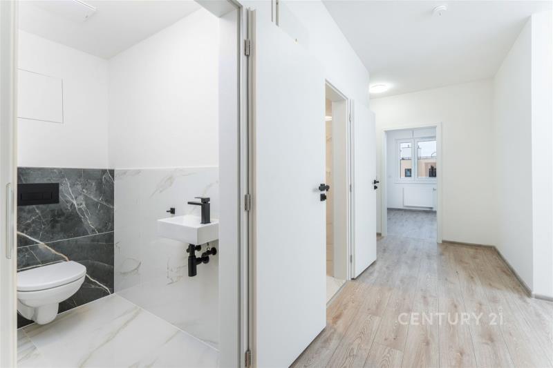 Nabízíme k prodeji výjimečný byt o dispozici 3+kk, který v kontextu pražského bydlení vyniká svou naprosto unikátní terasou. Nemovitost byla zkolaudována v lednu 2026 a nachází se v bezprostředním sousedství přírodní rezervace Prokopské údolí. Pokud hledáte domov, kde se hranice mezi interiérem a venkovním prostorem stírá, je tento byt přesně pro vás. Hlavní dominantou je obrovská terasa o rozloze 151 m², která obklopuje celý byt a je přístupná ze všech hlavních místností. Její plocha nabízí nekonečné možnosti pro vybudování profesionální letní kuchyně s grilem, kde můžete hostit rodinu i přátele, umístění vířivky pro večerní relaxaci nebo vytvoření vlastního workoutového hřiště. I po umístění všech těchto prvků vám stále zbude velkorysý prostor pro zahradní nábytek či zeleň, a to vše s nerušeným výhledem přímo do Prokopského údolí. Interiér bytu o ploše cca 77 m² je připraven k dokončení podle vašeho vkusu. Byt se prodává nezařízený, což vám dává svobodu zvolit si kuchyňskou linku a nábytek přesně na míru vašim představám (přiložené vizualizace slouží pro inspiraci). Jedinou kompletně dokončenou částí je designová koupelna a samostatná toaleta, které jsou provedeny ve vysokém standardu s moderními obklady a černými armaturami. Velkou výhodou je, že součástí kupní ceny je již zahrnuto vlastní parkovací stání v podzemní garáži domu a také nadstandardně prostorný sklep o velikosti 5,35 m². Lokalita kombinuje naprostý klid u přírody s výbornou dostupností metropole. Přímo u domu se nachází tramvajová zastávka, odkud se pohodlně dostanete do centra města za 20 minut. Tento byt představuje vzácnou kombinaci moderní novostavby, maximálního komfortu a venkovního prostoru, který v Praze jen stěží najde konkurenci.