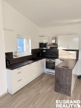 Nabízíme k prodeji moderní byt v rezidenčním resortu EDEN v Rožnově pod Radhoštěm. Byt o dispozici 3+kk má užitnou plochu 75,82 m² a nabízí také prostornou terasu o velikosti 10,96 m². K bytu náleží vlastní parkovací místo přímo před domem. Byt je ve výborném stavu a je připraven k okamžitému nastěhování. Podlahy jsou řešeny kvalitním vinylovým povrchem, který je odolný a zároveň příjemný na údržbu. Kuchyňská linka je plně vybavená vestavěnými spotřebiči – mikrovlnnou troubou, troubou, sklokeramickou varnou deskou, myčkou a vestavěnou lednicí. Koupelna je vybavena koupelnovým nábytkem vyrobeným na míru, který nabízí dostatek úložného prostoru a praktické využití. Vytápění bytu je řešeno teplovodním podlahovým topením, které zajišťuje příjemný tepelný komfort. V koupelně je navíc instalován radiátor Concept 100. Centrální zdroj tepla a ohřevu teplé vody v objektu zajišťuje moderní tepelné čerpadlo vzduch–voda se zásobníkovým ohřívačem. Elektroinstalace zahrnuje standardní zásuvkové okruhy, vývody pro osvětlení a také TV a datovou zásuvku. Resort EDEN nabízí klidné a moderní bydlení v krásném prostředí Rožnova pod Radhoštěm, v blízkosti přírody, Beskyd i veškeré občanské vybavenosti.