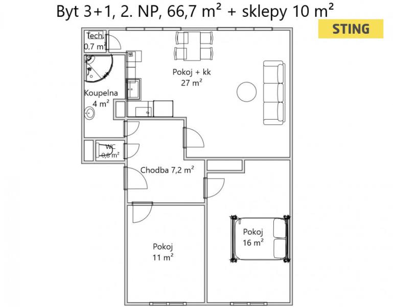 Nabízíme k prodeji světlý, čistý prostorný cihlový byt o dispozici 3+kk a celkové ploše 77 m², který se nachází ve 2. podlaží cihlového domu se čtyřmi bytovými jednotkami. Byt je v prohlášení vlastníka veden jako 3+1, aktuálně je však dispoziční úpravou užíván jako 3+kk. K bytu dále náleží parkování u domu, což vám zajistí komfort bez starostí s hledáním místa. Byt je v osobním vlastnictví a ve velmi dobrém stavu. V uplynulých letech prošel částečnou rekonstrukcí – modernizována byla koupelna, instalovány venkovní žaluzie, nové bezpečnostní vstupní dveře a vlastní plynový kondenzační kotel, díky kterému si pohodlně regulujete náklady na vytápění i ohřev vody. Hlavní výhody: ✔ dispozice 3kk bez průchozích místností ✔ 3 velké sklepy – dostatek úložného prostoru ✔ podíl 1/4 půdy ✔ zahrada o výměře 127 m² ✔ pouze 4 bytové jednotky v domě – klidné bydlení ✔ cihlový dům ✔ vlastní vytápění – plynový kondenzační kotel ✔ velmi dobrý stav Byt nabízí příjemnou atmosféru a je vhodný jak pro rodinné bydlení, tak jako investice. Dům je situován v klidné oblíbené lokalitě města Lednice, která nabízí ideální kombinaci soukromí a dostupnosti služeb. Pro další informace nebo sjednání prohlídky mě neváhejte kontaktovat. Virtuální prohlídka na adrese https://my.matterport.com/show/?m=73KDqswCeae. V případě více zájemců si majitel vyhrazuje právo prodat nejvýhodnější nabídce. Do konce února 2026 nabízíme prostřednictvím našeho partnera úrokové sazby od 4,29 % p.a. Více informací Vám sdělí náš specialista na prohlídce.