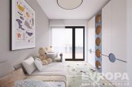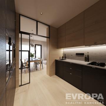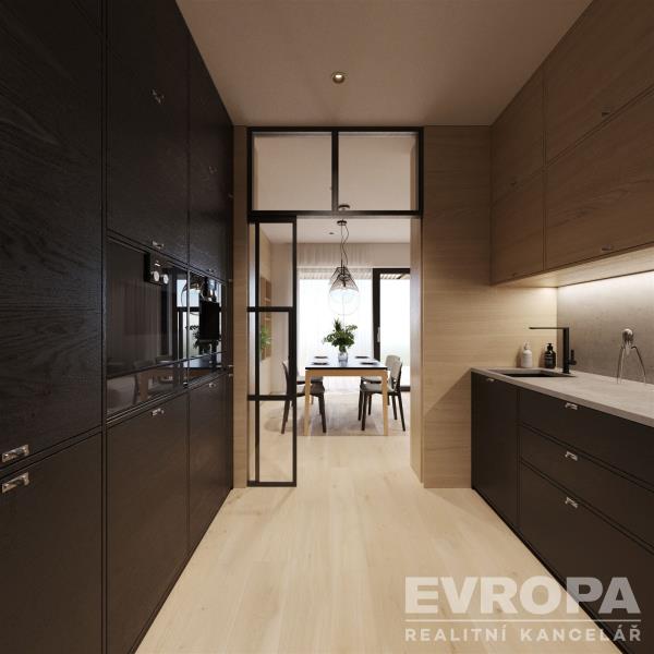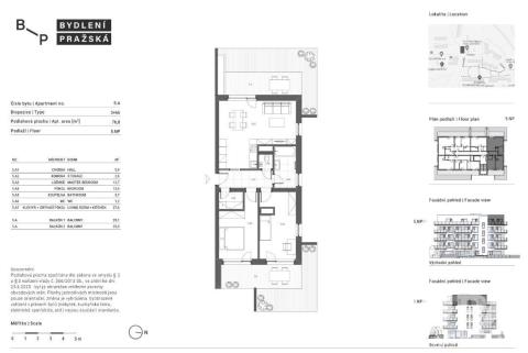Byt se nachází v 5.NP s výtahem. Byt o dispozici 3+kk s plochou 76,8 m2 a balkony o velikosti 29,1 m2 a 25,0 m2. Byt je umístěn na S a V.
