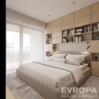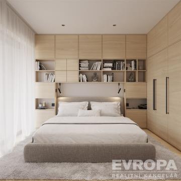 Disp.: chodba 5,9 m2, komora 2,6 m2, ložnice 13,7 m2, pokoj 15,0 m2, koupelna 5,7 m2, WC 1,2 m2, kuchyň a obývací pokoj 27,6 m2, balkon 1 29,1 m2, balkon 2 25,0 m2.
