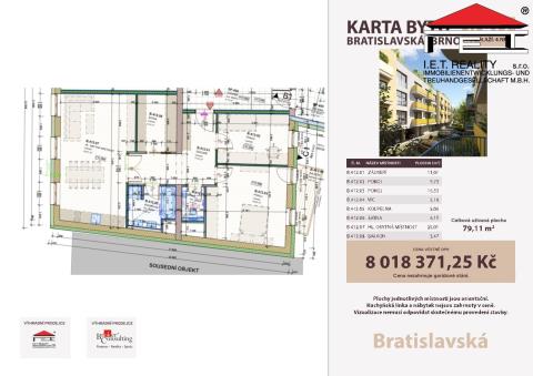 K prodeji, Byt 1+kk, 77 m2 Brno, Bratislavská