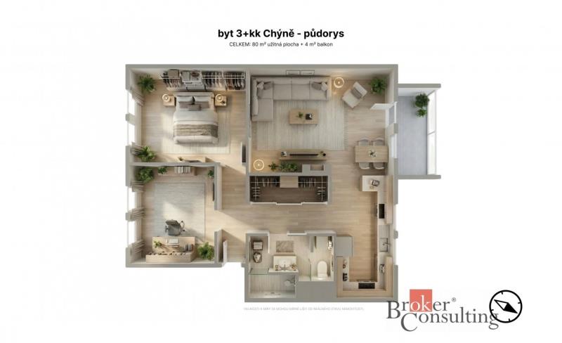 K prodeji, Byt 3+kk, 71 m2 Líšnice