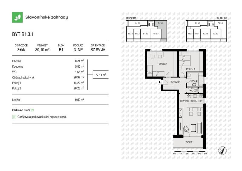 Nabízíme prostorný byt s označením B1.3.1 o dispozici 3+kk, podlahové ploše 80,1 m2 v 3. NP, s balkónem 9,5 m2. ideální pro rodiny s dětmi, páry nebo jako investiční bydlení.
