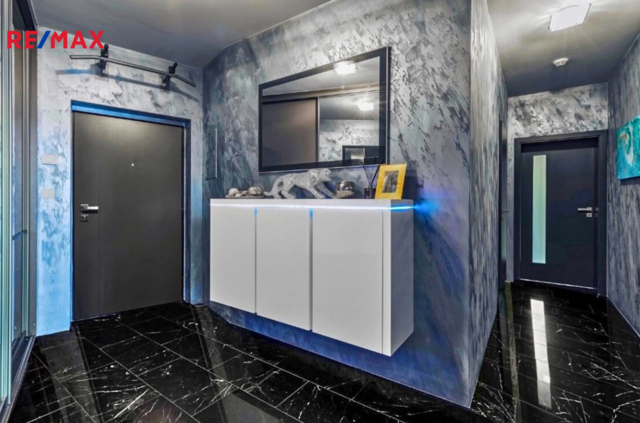 Sháníte byt, kterým se můžete pochlubit mezi svými známými? Byt, který není jen místem k přespání, ale skutečnou známkou životního stylu a úrovně? Pak právě pro vás je tato jedinečná nabídka. Nabízíme k prodeji velmi slunný a designový byt 3+kk o velikosti 81 m², který disponuje hned dvěma terasami. Nachází se kousek od Žižkova a co by kamenem dohodil od Karlína – v novostavbě situované do rozsáhlého lesoparku Krejcárek. Tato poloha zajišťuje jedinečnou kombinaci života v širším centru Prahy s bezprostředním dotekem přírody, což rozhodně není standardem. V docházkové vzdálenosti najdete obchody, restaurace, školy i školky, sportoviště a wellness. Procházky si vychutnáte v parcích Krejcárek a Vítkov, nákupy pak v nedalekých centrech Flora, Harfa či Fénix. Dopravní dostupnost je skvělá – zastávka MHD je hned u domu, metro přibližně 800 m. Interiér bytu byl navržen architektem tak, aby byl sladěn každý detail. Největší místnost je chytře rozdělena do čtyř zón – prostorné kuchyně ve vysokém lesku s nejmodernějšími spotřebiči, jídelním koutem, pracovním prostorem a obývací částí, ze které je přístup na hlavní terasu s výhledem do zeleně. Další dvě ložnice nabízí komfortní čtvercový půdorys pro snadné zařízení nábytkem. Větší z ložnic má vstup na menší terasu a vestavěnou šatnu v originální lila barvě. Samozřejmostí jsou nadstandardní materiály: lesklé benátské štuky, italský mramor v předsíni, rozsáhlá skleněná skříň se zrcadlem, skleněné dotykové vypínače a zásuvky. Antracitová koupelna s podsvícenými nikami a rohovou vanou je skutečnou třešničkou na dortu. Větší terasa je stavebně připravena i pro instalaci vířivky a osazena podlahou Bamboogard s LED bodovým osvětlením, kde si lze nastavit barvu i intenzitu světla a vytvořit si atmosféru přesně podle nálady. Byt se prodává bez nábytku, aby si nový majitel mohl interiér dotvořit podle svého vkusu. V případě více zájemců bude kupující vybrán formou nejlepší nabídky.