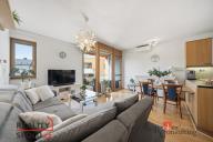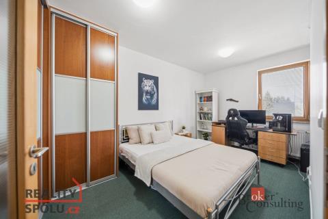 Dominantou bytu je prostorný obývací pokoj s kuchyňským koutem, který přirozeně tvoří srdce celého bytu. Tento otevřený prostor nabízí dostatek místa pro rodinný život, společné stolování i setkávání s přáteli.
