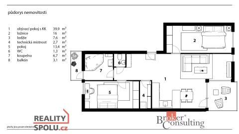 Celková plocha včetně lodžie a balkonu: 91,98 m²