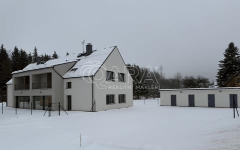 Nabízíme k prodeji moderní a útulný byt 3 + kk 77,2m2 s lodžií 11,4m2 v novostavbě domu v obci Kunčice nad Labem, ideální pro rodiny s dětmi. Nachází se v klidné lokalitě, pouhých 5 minut autem od Vrchlabí, a nabízí jedinečné spojení pohodlí a přírody, s blízkostí lyžařských středisek Herlíkovice a Špindlerův Mlýn, či Černý Důl nebo Janské Lázně v dojezdové vzdálenosti. Byt o celkové ploše 88 m² se nachází ve druhém patře domu a poskytuje dostatek prostoru pro každodenní rodinný život. Pokoje přirozeně vytváří prostor pro hravost a fantazii vašich nejmenších, zatímco obývací místnost s moderní architekturou a příjemným prosvětlením vytváří ideální prostředí pro rodinné chvíle. V bytě je příprava na kuchyňskou linku. S vybavením bytu vám rádi pomůžeme. Pro uložení sportovního či jiného vybavení má byt k dispozici prostorný sklep a parkovací místo pro vůz máte na privátním parkovišti na pozemku před domem. Jedním z největších benefitů této nemovitosti je rozsáhlá zahrada, kde děti mohou běhat, hrát si a objevovat přírodu, zatímco rodiče mohou trávit čas a užívat si klid a pohodu. Zahrada je dostatečně prostorná pro pořádání rodinných oslav a setkání s přáteli. Dům je vytápěn moderním tepleným čerpadlem, které zajišťuje plný komfort během celého roku. Lokalita nabízí možnosti koupání v Labi, které navazuje přímo na pozemek, což je dokonalá aktivita pro letní dny. A okolí nabízí širokou škálu příležitostí pro výlety a rekreaci v přírodě. Ideální místo pro rodiny hledající bezpečné a přátelské prostředí pro své děti, či vás - sportovně laděné cyklisty, turisty nebo lyžaře. Součástí ceny bytu je parkovací stání a venkovní sklepní kóje umístěná u parkovacích stání. Majitel každého bytu získává v ceně bytu podíl 1/8 na pozemku zahrady přiléhající k domu, velikost každého podílu je cca 400m². V případě zájmu o prohlídku nás neváhejte kontaktovat.