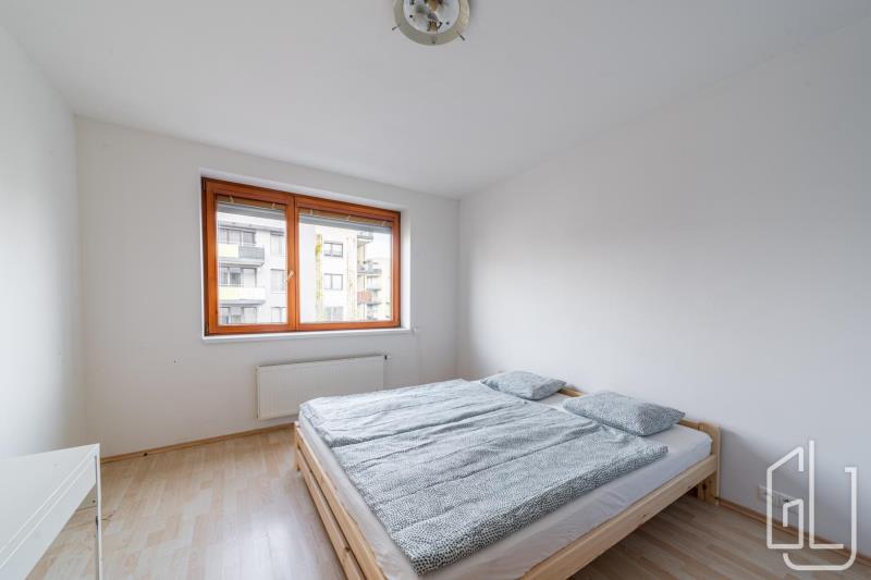 Byt působí světlým a vzdušným dojmem díky velkým oknům a orientaci do klidného vnitrobloku.