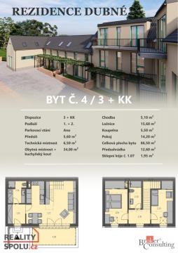 Nové bydlení v Dubném u Českých Budějovic Představujeme Vám atraktivní developerský projekt Rezidence v obci Dubné, jedné z nejvyhledávanějších lokalit v blízkosti Českých Budějovic. Projekt bytového domu zahrnuje 8 bytových jednotek (5kk, 4KK, 3KK, 2KK a 1KK), uvedená cena je za mezonetový byt 3kk a je ideální volbou pro klidné a komfortní bydlení v příjemném prostředí v blízkosti přírody a s výbornou dostupností do krajského města a navíc s výhodnou cenou za metr čtvereční. Naprostou výhodou je, že všechny bytové jednotky mají parkovací stání v uzavřeném dvoře objektu. Všechny byty mají buď vlastní předzahrádku nebo balkon a taktéž mají sklepní kóji. Cena za parkovací stání a sklep je 400 000 Kč. Nízká energetická náročnost bytů PENB – C je zajištěna kombinací podlahového vytápění s centrálním plynovým kotlem a zateplení objektu. Lokalita nabízí klidné bydlení s dostatkem zeleně a kompletní občanskou vybavenost přímo v obci, včetně mateřské a základní školy, potraviny a restaurací. Nechybí ani dětská hřiště, sportoviště a široké možnosti volnočasových aktivit. Projekt zahrnuje moderní byty s promyšlenými dispozicemi, kvalitním provedením a důrazem na pohodlí každodenního života. Dubné zde přirozeně spojuje klid venkova s výhodami města na dosah. Navíc přijíždíte ze směru, kde se netvoří větší kolony. Kolaudace a předání jednotek je plánováno na jaro v roce 2027. Na některých serverech panoramatické prohlížení ukazuje starou budovu, která byla kompletně zbourána a objekt se staví od základu nový. Výhodné financování zařídíme.