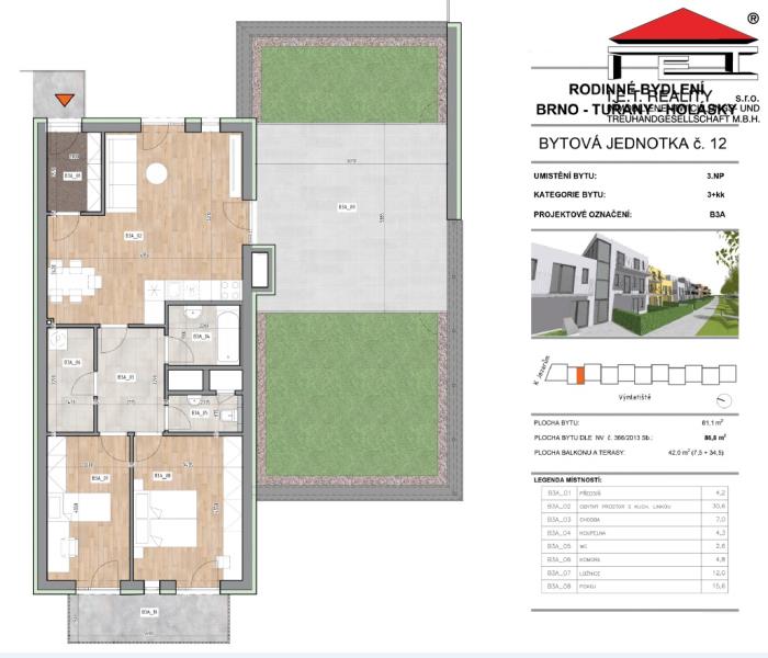 Prodej novostavby vilabytu č.12, 3+kk, 86,8 m², s terasou 34,5 m² a balkonem 7,5 m². Jednotka je situovananá ve 3.NP čtyřpodlažního domu a její součástí je také sklep 4,2 m2. V krásném prostředí Holáseckých jezer byla zahájena výstavba zcela nové čtvrti pro rodinné bydlení. Roste zde 11 řadových domů, které poskytnou prostorné, klidné bydlení v celkem 78 nadstandardních vilabytech. Každá z připravovaných jednotek nabídne terasu, balkon nebo zahrádku. V kombinaci s okolní přírodou, je zde tvořena iluze života v rodinném domě, ale bez starostí spojených s jeho údržbou. Parkovací místo před domem nebo v podzemní garáži je možné zakoupit samostatně ( garážové stání 550.000,- Kč, dvojgaráž 1.250.000,- Kč ). Volné parkovací plochy jsou pak dostupné na přilehlém pozemku obce. Řadové rodinné viladomy budou mít zelenou střechu a energetický standard ve třídě B, s téměř nulovou spotřebou. V kombinaci s kvalitní tepelnou izolací a moderními technologiemi, se jedná o bydlení nejen velmi úsporné, ale také šetrné k přírodě. Navazující výstavbu mateřské školy pro 48 dětí a domova pro seniory s bezbarierovými byty zaštiťuje Město. Předpokládaný termín dokončení je 03/2027, podrobné informace o průběhu výstavby, individuálních dispozic a financování, Vám rádi představíme při osobním jednání.
