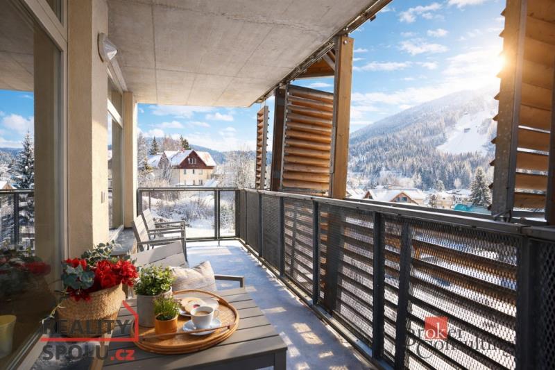 Byt, kam se chcete vracet. 3+kk s terasou, 2 garážemi a výhledem na skokanské můstky – Harrachov