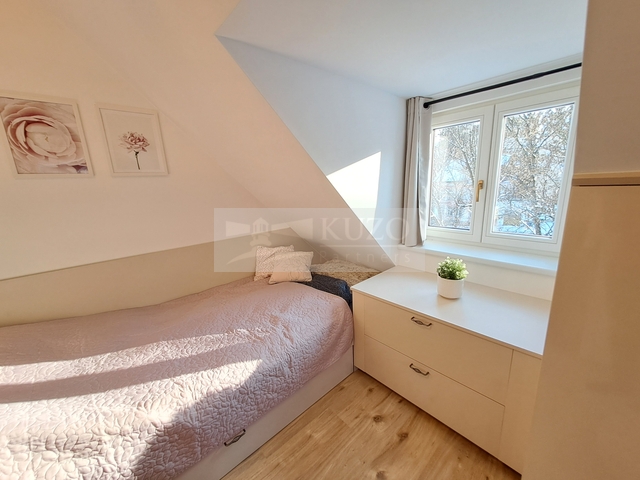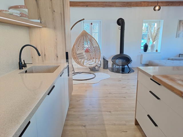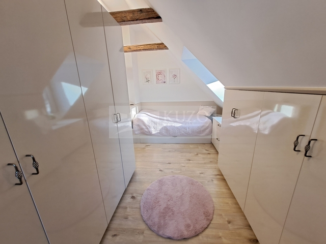 Představte si klid parku a okolních hor uprostřed historické části města Jablonce nad Nisou, svítání na horizontu pozorované z okna ložnice a západ slunce z obývacího pokoje u plápolajícího ohně. Ocitli jste se ve skoro pohádkovém 3+kk bytě, precizně zrekonstruované prvorepublikové vily s géniem loci starých časů s 1/3 vlastní zahrady s ovocnými stromy, uprostřed parku v tichu stromů a výhledy na horizont. V tomto unikátním bytě ve 3. nadzemním podlaží si budete připadat jako na Vašem malém soukromém zámečku, v království zimy a nedalekých hor a přitom s veškerým komfortem restaurací, obchodů a služeb okolního města. Byt, stejně tak jako celá vila o 6-ti bytových jednotkách, je citlivě zrekonstruován s důrazem na kvalitu a maximální pohodlí majitelů. Vestavěná kuchyně je od interiérové špičky na trhu, spol. Hanák, s pracovní deskou z drceného kamene, denním barem, výsuvnou digestoří, nadrozměrnou lednicí a dalšími prvky dotvářejí pocit luxusu a péče. Koupelna s vanou umožňuje relaxaci po náročném pracovním nebo sportovním dni, stejně jako posezení u litinového designového krbu v obývacím pokoji. Sedací okno zase vybízí k zasněným toulkám pohledy po krajině z tepla a pohodlí domova. Klidný nádech ložnice dovoluje majitelům plně se uvolnit a načerpat síly na další dny a výzvy. Pracovna/dětský pokoj je vybaven na míru zhotovenými vestavěnými skříněmi, také od spol. Hanák. Krásné původní masivní trámy a větší a menší okénka dodávají tomuto unikátnímu bytu zemitý a tradiční charakter. Důmyslné úložné prostory naleznete v komoře pod schody i v malé komůrce u vstupní haly nad schody. Na střeše nad bytem je navíc možno vytvořit rozlehlou terasu s panoramatickými výhledy. Mohutné zdi, nová dřevěná okna, vlastní kvalitní plynový kotel a velký litinový krb společně předurčují nejen velmi ekonomický a efektivní provoz bytu, ale také zajišťují tepelnou pohodu s nádechem klasického, lehce aristokratického stylu. Na pozemku před domem se nachází kůlna na zahradní nábytek a parkovací stání náležející k bytu je přímo před domem. Tento jedinečný byt se může stát Vaším novým domovem nebo rekreační oázou, kde jistě zapomenete na starosti všedních dní. Obdobný byt se v Jablonci nenabízí, tak si nenechte tuto příležitost ujít. Těším se na Vás.