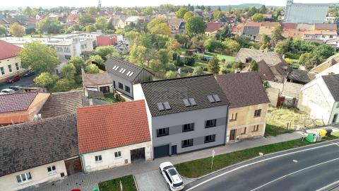 Exklusivně nabízíme k prodeji novostavbu bytu 3+kk ve zděném domě se třemi byty, v Novém Strašecí (v nabídce také dva byty 5+kk cca 128 m2). Byt je umístěn v přízemí třípodlažní nově budované zděné stavby (k nastěhování koncem r. 2026) a jeho obytná plocha činí 98,43 m2. V bytě nalezneme zádveří, chodbu, obývací pokoj kuchyň se spíží, koupelnu s vanou, sprchovým koutem a toaletou, pokoj a ložnici. K bytu dále náleží parkovací stání ve dvoře za dvěmi sekčními vraty s elektrickým pohonem. Vytápění bytu a ohřev vody řešeno vlastním plynovým kotlem, v celém bytě teplovodní podlahové vytápění. Byt se nabízí v kvalitních standardních materiálech, možnost výběru obkladů, dlažeb, finálního povrchu podlah a obložkových dveří (fotografie jsou orientační z bytů 5+kk v tomto domě). V případě zájmu možno řešit také nadstandardní výběr materiálů dle požadavků klienta. Pro bližší informace nás neváhejte kontaktovat. Financování možné úvěrem, rádi vyřídíme.