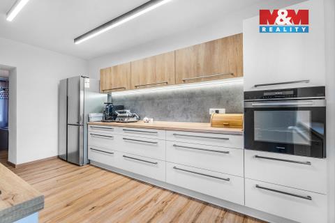 Nabízíme prostorný a světlý byt 4+1 o výměře 94 m² v žádané lokalitě Děčína, jen pár minut od centra. Byt prošel kompletní a náročnou rekonstrukcí na přelomu let 2022/2023 – nové podlahy (vyčištěné až na beton, znovu vylité a izolované) s kvalitním vinylovým povrchem Falquon, nové štukované stěny a stropy i kompletní třífázové elektroinstalace včetně přívodu do bytu. Kuchyň je na míru od místního truhláře z Děčína, prostorná, praktická a plně vybavená spotřebiči Concept. Koupelna disponuje elektrickým podlahovým vytápěním, v bytě jsou nové bezfalcové interiérové dveře a protipožární vstupní dveře Solodor. Rozvody vody, topení i plynový kotel jsou nové, teplotu lze řídit digitálním termostatem. Osvětlení je moderní, stmívatelné na dálkové ovládání či přes aplikaci. K dispozici je zde také sklep a možnost parkování v oploceném vnitrobloku. Velkou výhodou je také veškerá občanská vybavenost v docházkové vzdálenosti od bytu. Případné financování zajistíme. Více informací u makléře.