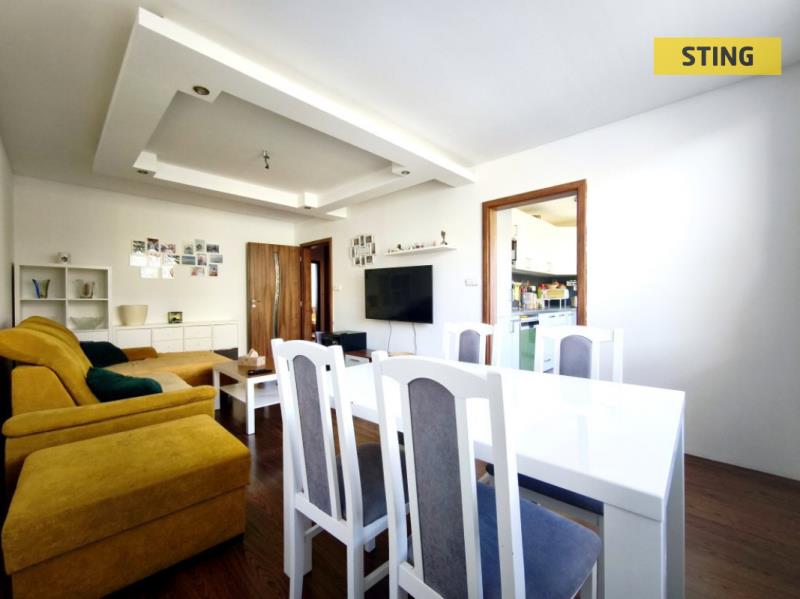 Nabízíme vám k prodeji prostorný byt o dispozici 4+1 v obci Velké Meziříčí, ul. Bezděkov. Byt se nachází ve 4.patře panelového domu bez výtahu. Podlahová plocha bytu činí 89 m2 (+ nový velký balkón s krásným výhledem o výměře cca 3,6 m2 a samostatný prostorný sklep 14,5 m2, celková plocha je tedy 107 m2). Byt prošel cca před 10 lety rozsáhlou rekonstrukcí, která zahrnovala nové podlahy, zděné jádro, rozvody elektřiny a vody, zateplené a snížené stropy, vestavěné skříně a další. Vytápění zajišťují el.přímotopy a ohřev vody el. bojler. Náklady na bydlení pro cca 4-5 osob je 6.900 kč/měsíčně. Určitě oceníte umístění domu, kdy v okolí najdete veškerou občanskou vybavenost vč. základní a mateřské školy, náměstí, poštu, různé obchody a služby. Těším se na vás na prohlídce. Do konce února 2026 nabízíme prostřednictvím našeho partnera úrokové sazby od 4,29 % p.a. Více informací Vám sdělí náš specialista na prohlídce.
