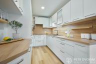 Byt prošel v roce 2024 kompletní rekonstrukcí odbornou firmou — nové rozvody elektřiny a vody, radiátory, podlahy včetně podkladů, kuchyňská linka i spotřebiče. Trojskla jsou vybavena elektricky ovládanými roletami na dálkové ovládání. Akusticky upravené stěny a stropy zajišťují skutečný klid v každé části bytu. Interiér dokreslují dveře z dubové dýhy sladěné s podlahou.