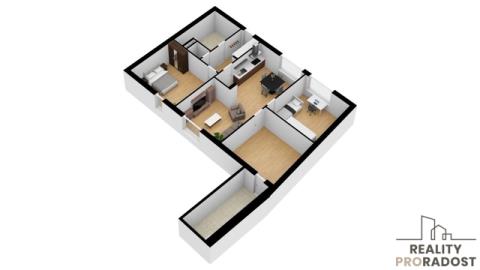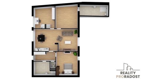 Již při vstupu do ateliéru zaujme podlahové vytápění a klimatizace, které zajišťují dokonalý komfort a pohodlí. Ateliér, dispozice 4+KK o velikosti 135,70 m2. 3 neprůchozí pokoje, kuchyně s obávacím pokojem o velikosti 36 m2. Koupelna s vanou a sprchovým koutem, samostatné WC, druhá koupelna. Jediný byt na patře, samostatný vstup. Výhled na Hrádek.