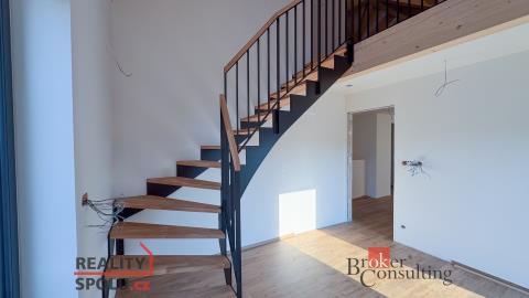 V druhém podlaží je chodba, dvě ložnice, šatna, koupelna s technickou místností a vstup do mezonetových prostor v podkroví, které nabízejí originální kombinaci pracovny a ložnice.
