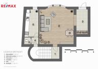 Byt o celkové ploše 217,4 m² (z toho podlahová plocha 140,3 m², terasa 30 m² a sklepní prostory 47,1 m²) nabízí jedinečné propojení obytného komfortu, soukromí a variability využití.