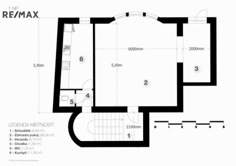 • Podlahy: na chodbách a v kuchyni linoleum, v koupelně a na toaletě dlažba