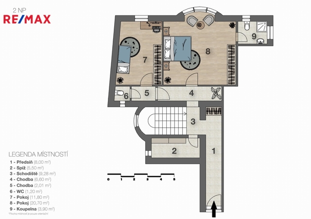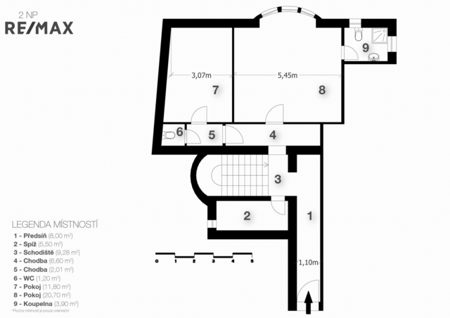 2. nadzemní podlaží (2. NP) – 69,7 m²