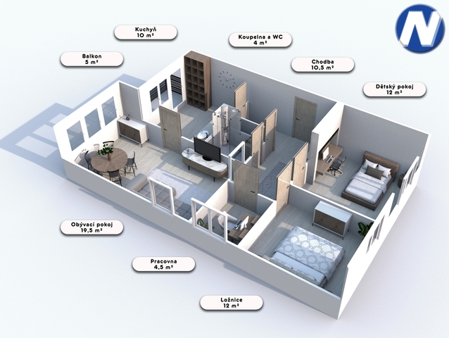 K prodeji, Byt 3+1, 88 m2 Křišťanov