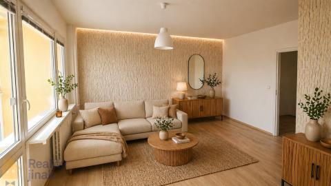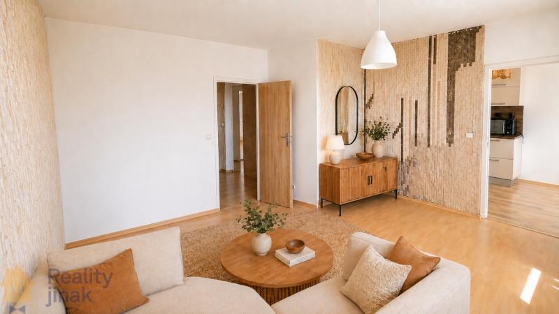 Nabízíme vám ke koupi hezký slunný byt 4+1 v osobním vlastnictví o velikosti 78 m2 + lodžie 4,8 m2 v 7. patře 8mi patrového kompletně zrevitalizovaného domu s výtahem na ulici Oblá v Brně - Novém Lískovci. Byt má neprůchozí pokoje, kdy obývací pokoj s lodžií a kuchyně jsou otočeny na jihozápad a jsou tedy světlé a slunné a ložnice s oběma pokoji na severovýchod, které jsou přes den přirozeně chladnější a klidnější. Díky ideální orientaci jihozápad-severovýchod si tedy užijete dostatek přirozeného světla po celý den. Největším klenotem bytu je však bezesporu výhled z lodžie, který se při jasném počasí otevírá až na vrcholky Pálavy. Tento byt je připraven k okamžitému nastěhování. Můžete se těšit na čerstvě vymalované stěny, nové podlahy a moderní kuchyňskou linku (starou pouhé 2 roky), dále zděné jádro a nové dveře. Jeho dispozici je možné nastudovat v přiloženém půdorysu. Byt je velmi světlý díky své orientaci a díky tomu, že má chodbu uprostřed, jsou pokoje neprůchozí. Nabízí se prázdný, tedy připravený pro vaše vlastní vybavení. Pro okamžitý start vám zůstává kuchyňská linka s lednicí a mikrovlnnou troubou a v koupelně pračka. Další vybavení bylo doplněno vizualizací, která vám pomůže snadno si představit, jak by mohl váš nový domov vypadat. V okolí domu najdete vše, co potřebujete k pohodlnému životu - ZŠ, MŠ, obchod, zdravotnické zařízení, restaurace, zastávka autobusu cca 200m od domu, na tramvaj je to cca 400m. Parkovací zóna typu C zajišťuje dostatek parkovacích míst i ve večerních hodinách. Byt bude volný dle dohody, není zatížený žádnou právní vadou a je možné jej financovat hypotékou. Průkaz energetické náročnosti budovy uvádí energetickou třídu C. V případě dalších dotazů či zájmu o prohlídku kontaktujte makléře.