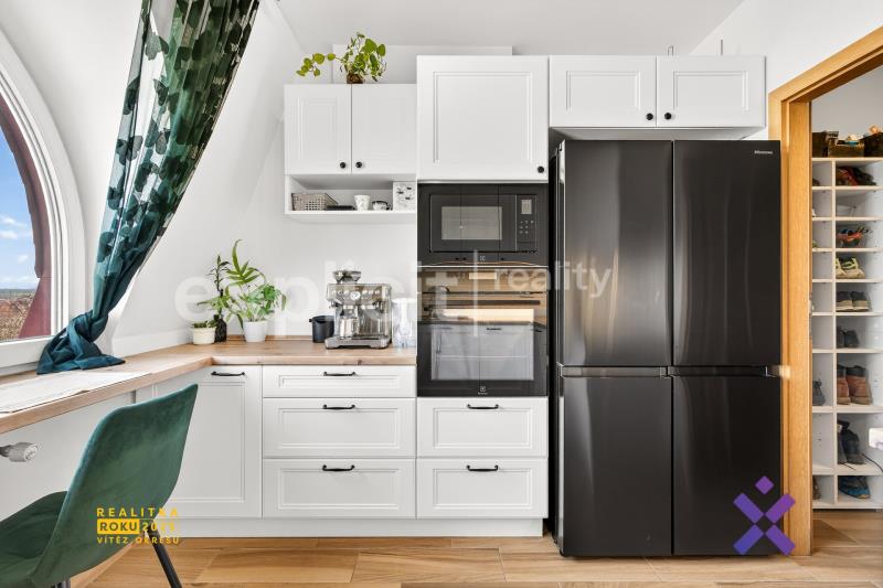 ID 02636 Alice Nováková & Explicit Reality vám nabízí prostorný byt o dispozici 4+1 v širším centru Kroměříže, který vás zaujme nejen svou velikostí, ale také skvělou občanskou vybaveností v bezprostředním okolí. Byt se nachází v 7. patře domu a je orientován na jihovýchod. V hlavním podlaží najdete prostorný obývací pokoj s kuchyní, samostatnou toaletu a velkou předsíň. V horním patře jsou situovány další tři místnosti – ložnice, pokoj a pracovna se šatnou. Součástí patra je také prostorná koupelna s vanou a druhou toaletou. Dům prošel v letošním roce rekonstrukcí, která zahrnovala zateplení, novou střechu a výměnu oken. Samotný byt je rovněž po zdařilé rekonstrukci. Kuchyně byla dokončena letos a nabízí moderní vybavení včetně vestavěných spotřebičů, americké lednice a myčky nádobí. Velkou výhodou bytu je vlastní plynový kotel, díky kterému máte plnou kontrolu nad spotřebou energií. Přívod vody do bytu je navíc vybaven vodním filtrem, který změkčuje vodu jak pro pitné, tak užitkové účely. Dalším významným benefitem jsou tři klimatizační jednotky – v obývacím pokoji, ložnici a pracovně. Velkým lákadlem je také lokalita. Hned naproti domu, přes silnici, se nachází zámecký park, ideální místo pro sport i odpočinek. V blízkosti najdete autobusové nádraží i cyklostezku. Bezpečí, prostor, komfort a výborná poloha – to vše tato nemovitost nabízí. Těším se na osobní prohlídku. Mgr. Alice Nováková – vaše spolehlivá partnerka na poli realit.