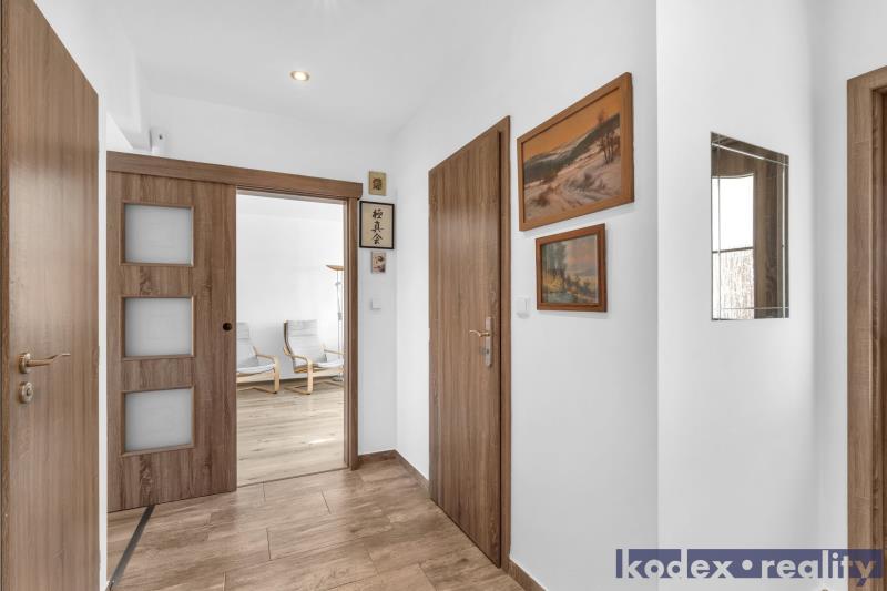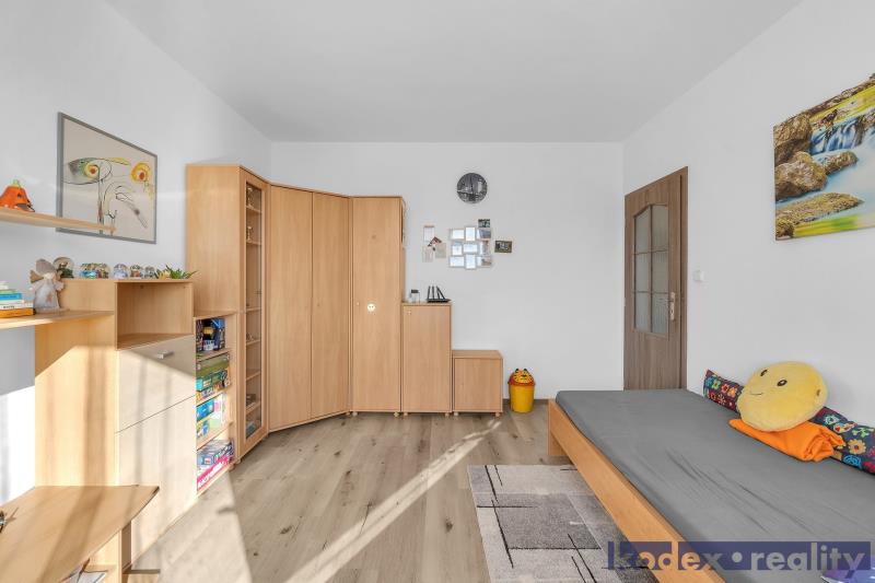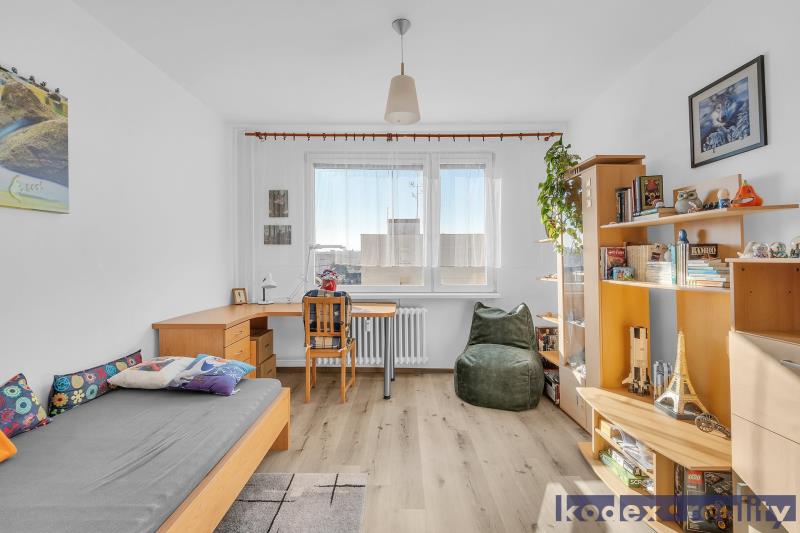 Dispozice: předsíň s komorou, koupelna s vanou a prostorem pro pračku a sušičku, oddělené WC, kuchyň s jídelním prostorem, obývací pokoj se vstupem na lodžii, ložnice, 2x dětský pokoj, pracovna a sklepní kóje v suterénu budovy.