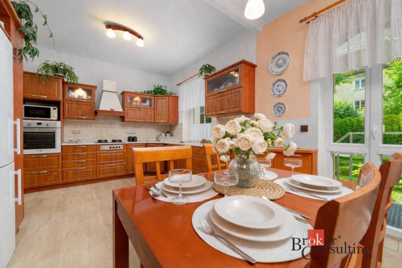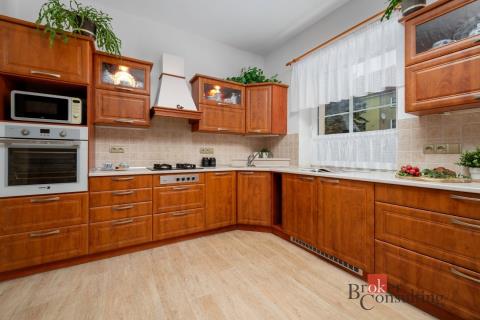 Prostorný byt 4+1 po rekonstrukci, Liberec – Králův háj (ulice Březinova) Nabízíme ke koupi prostorný byt o celkové podlahové ploše 97,28 m², umístěný v 1. nadzemním podlaží zděného bytového domu v žádané liberecké lokalitě Králův háj. Byt prošel rekonstrukcí v roce 2009 a je dlouhodobě velmi dobře udržovaný. Praktická dispozice nabízí dostatek prostoru i soukromí. Je vhodná jak pro rodinné bydlení, tak pro klienty, kteří hledají velkorysý byt ve zděném domě. Z kuchyně a lodžie je přímý vstup na pečlivě udržovanou zahradu. Na základě písemné smlouvy s městem je možné tuto zahradu zdarma využívat, přičemž každý vlastník má vymezenou svou část. Byt dále disponuje praktickou komorou, kterou lze využít i jako šatnu. Vytápění je řešeno kombinací krbových kamen s napojením do radiátorů a kombinovaným plynovým kotlem, který zároveň zajišťuje ohřev teplé vody. V koupelně je instalováno elektrické podlahové vytápění. Byt je napojen na veškeré inženýrské sítě (voda, kanalizace, plyn, elektřina). K bytu náleží velká zděná půdní místnost a k dispozici je také společný půdní prostor. Další úložné možnosti poskytují dva samostatné zděné sklepy v suterénu domu. Parkování je možné přímo u domu. Lokalita Sídliště Králův háj patří dlouhodobě mezi vyhledávané části Liberce. Okolí nabízí dostatek zeleně, dobrou občanskou vybavenost a výbornou dostupnost MHD i autem. Centrum Liberce je vzdáleno cca 2 km. Byt je orientován převážně východ–západ, což zajišťuje dostatek denního světla po celý den. K bytu je možné dokoupit řadovou garáž v ulici Zvolenská, vzdálenou cca 550 m. Shrnutí hlavních benefitů: dispozice 4+1 téměř 100 m² podlahové plochy rekonstrukce bytu zděný dům klidná a vyhledávaná lokalita Králův háj dobrá dostupnost centra města velké úložné prostory možnost dokoupit garáž Tento byt je vhodný jak pro rodiny s dětmi, tak jako zajímavá příležitost pro budoucí podnikání. S financováním rádi pomůžeme.