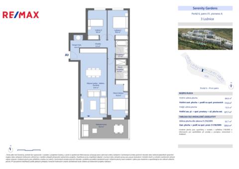 ✔ Apartmán: má rozlohu 84,8 m2 a přísluší k němu nekrytá terasa o velikosti 15,9 m2