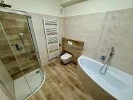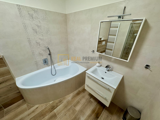 Dispozičně byt nabízí: 3 neprůchozí pokoje, obývací pokoj s návazností na jídelní kout a kuchyňskou linku, koupelnu se sprchovým koutem i vanou a WC, další samostatní WC.