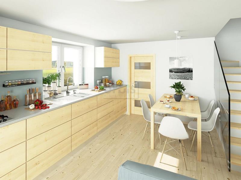 Nabízíme k prodeji nový, mezonetový byt v klidné části obce Rynholec, v rodinném domě se dvěma byty. Jedná se o byt o velikosti 4+kk, kdy čistě obytná plocha bytu činí 80,35 m2 + 9 m2 terasa a v ceně také parkovací stání pro dva automobily na vlastním pozemku u domu. V přízemí bytu se nachází vstupní chodba, koupelna se sprchovým koutem, rohovou vanou a WC, dále pak Obývací pokoj s kuchyňským koutem. V patře se potom nachází tři pokoje a druhá toaleta. Vytápění v celém bytě podlahové teplovodní z vlastního plynového kotle přes který je řešen i ohřev vody. V aktuální fázi možný výběr standardů které jsou v ceně - obklady, dlažby, podlahy, obložkové dveře. K prodeji je v domě e také druhý nový byt 4+kk/T, stání, o výměře 76,88 za cenu 6.990.000,- Kč. Byty k nastěhování od 1.9.2026. Financování možné hypotékou. Rádi vyřídíme. Bydlení ve velmi klidné lokalitě u rybníka s dobrou dostupností na Prahu.