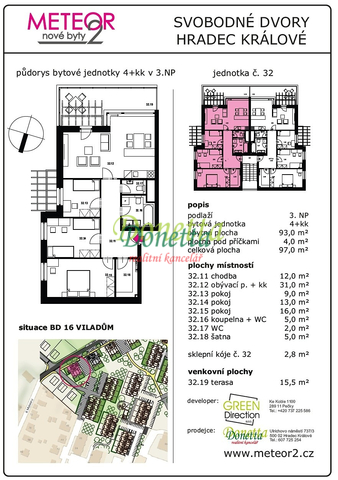 Nová moderní bytová jednotka 4+kk (byt č. 32 a č. 31) s terasou 15,5 m2 se nachází v ulici K Meteoru v Hradci Králové, v části Svobodné Dvory. Jedná se o byt v novostavbě bytového domu, jehož výstavba byla zahájena na počátku roku 2025 a bude k dispozici nejdéle na konci léta roku 2026.