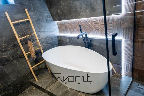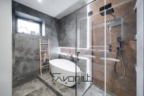 Prodej bytu 4+kk se dvěma terasami, wellness a 2 parkovacími stáními Novostavba je unikátní díky soukromému wellness a fitness přímo v domě, určenému výhradně pro rezidenty. Dům je postaven z kvalitních materiálů: • cihla Porotherm + zateplení polystyrenem 200 mm, • hliníková okna, • vinylové podlahy, • centrální plynová kotelna. Dispozice bytu 4+kk: • prostorný obývací pokoj s kuchyňským koutem • kuchyňská linka na míru od stolaře včetně vestavěných spotřebičů Bosch • koupelna se sprchovým koutem a vanou • vše z vysoce kvalitních materiálů • součástí je sklepní prostor (8 m²) • vstupy na terasy (22 m) z obývacího pokoje Výhody projektu • wellness + fitness pouze pro rezidenty • klidná lokalita v ochranném pásmu – bez další plánované výstavby • dvě parkovací stání v ceně • výborná dopravní dostupnost • v domě pouze 9 bytů, komorní atmosféra • fotovoltaika Lokalita: Výborná dostupnost: rychlé napojení na dálnici, krátký dojezd do Poruby i centra Ostravy. Okolí nabízí klid, zeleň i občanskou vybavenost.