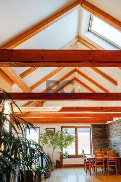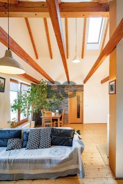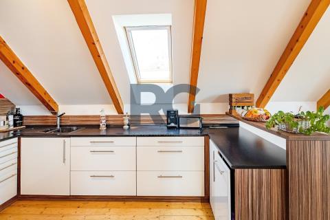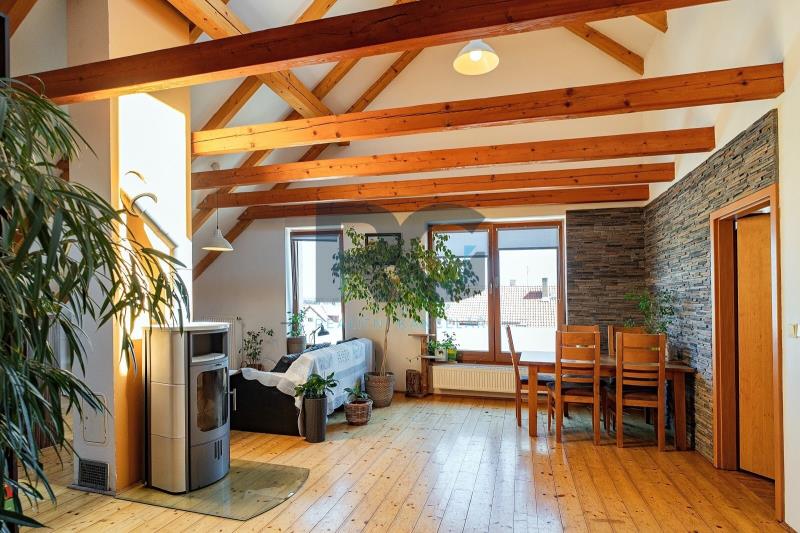 Exkluzivně nabízíme k prodeji podkrovní byt o dispozici 4+kk. Byt o výměře podlahové plochy 124,7 m2 nabízí světlý obývací prostor s krbem, kuchyň a tři samostatné ložnice. Kuchyně je vybavena spotřebiči - lednicí, myčkou, troubou, varnou deskou a digestoří. Jedna z ložnic disponuje samostatnou koupelnou se sprchovým koutem, umyvadlem a toaletou; druhá koupelna, se vstupem z haly, je s vanou, umyvadlem a přípojkou na pračku. Druhá toaleta je samostatná. Hala bytu poskytuje dostatek úložného místa, stejně tak půdní prostor o výměře 35 m2 přístupný po žebříku z haly. V obývacím prostoru, díky vysokým stropům do krovu, lze umístit vestavbu a vytvořit tak další obytnou část. K bytu je možné přikoupit řadovou garáž se zavedenou elektřinou za cenu 550.000 Kč. Obec Čížová se nachází 7 km od královského města Písku, je dostupná rovněž po železnici. V obci je k dispozici školka, základní škola, obchod, služby a lékař. Přímo v domě pak kadeřnictví a zubní ordinace. Napojení na D4 je po 3 km jízdy. Pro více informací a sjednání prohlídky mě neváhejte kontaktovat.