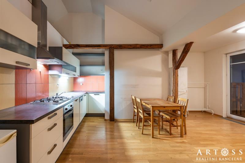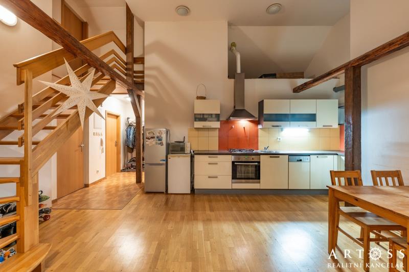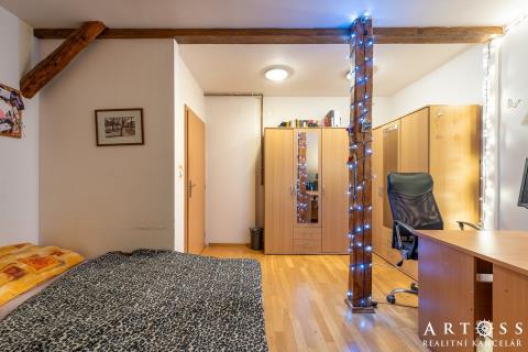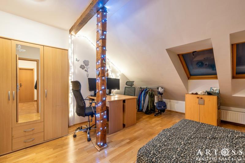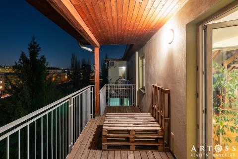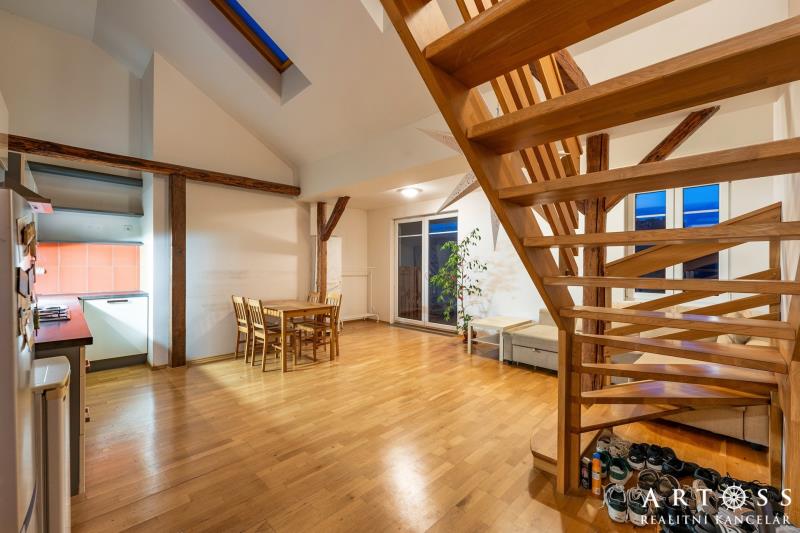 mezonet byt 4+kk s terasou v Brně – ul. Sportovní - Ponava Nabízíme k prodeji výjimečný, prosvětlený byt v žádané lokalitě na ulici Sportovní. Tento mezonet vznikl jako kvalitní půdní vestavba v roce 2010 a nabízí promyšlenou dispozici pro rodinu. Dispozice a plochy: Byt je fakticky koncipován jako 4+kk se dvěma podlažími. Právní podlahová plocha: 90,5 m2 (plocha evidovaná v KN a sloužící pro výpočet podílů). Skutečná užitná plocha: cca 115,5 m2 (zahrnuje komfortní mezonetovou vestavbu o ploše 25 m2, která není započtena v listu vlastnictví) + Terasa: 12,7 m2 s výhledem, ideální pro relaxaci. Standardy a vybavení: Spodní podlaží: Prostorný obývací pokoj s kuchyňským koutem (33,3 m2), dvě samostatné ložnice, koupelna a oddělené WC. Horní podlaží: horní pokoj (24,5 m2), který může sloužit jako hlavní ložnice, pracovna nebo dětská herna. Vytápění: Vlastní otopný systém zajišťující nízké provozní náklady. Byt bude předán vyklizený a připravený k okamžitému nastěhování. (Upozornění: Financování hypotékou je možné, bankovní odhadce bude vycházet z plochy evidované v KN 90,5 m2 + příslušenství)