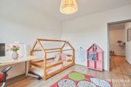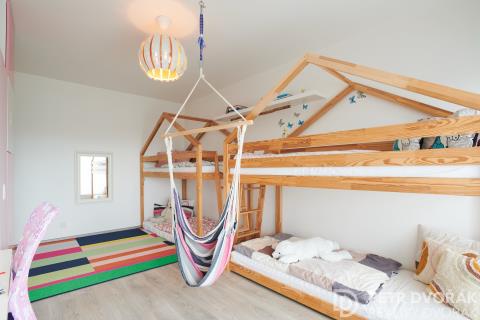 Dispozice je ideální pro rodinu – dětské pokoje jsou oddělené od ložnice i obývací části prostornou chodbou a každá část má svou vlastní koupelnu. Díky tomu má každý člen domácnosti dostatek soukromí.