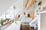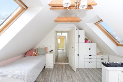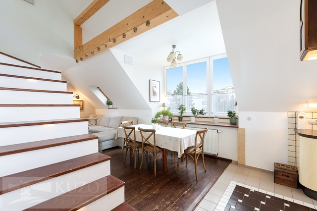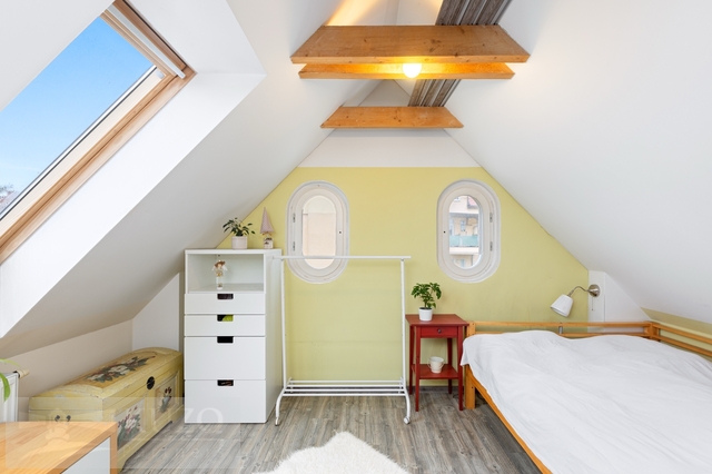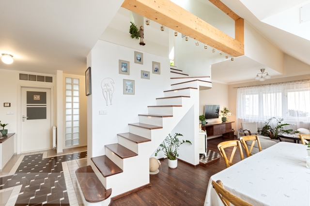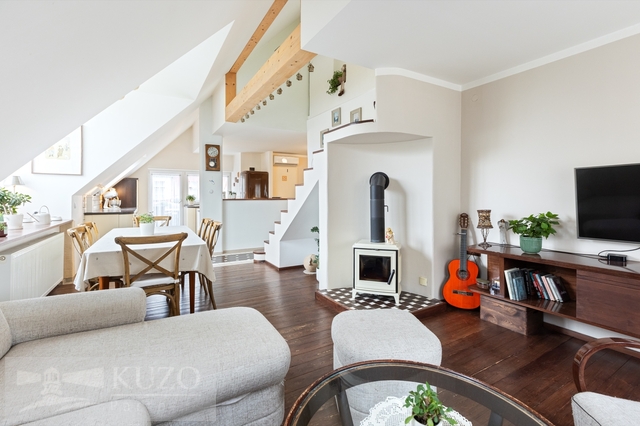Nabízíme ke koupi výjimečný mezonetový byt o užitné ploše 109 m², nacházející se ve 3. nadzemním podlaží komorního bytového domu s pouhými třemi bytovými jednotkami, v klidné a velmi vyhledávané lokalitě ulice Boženy Němcové v centru Mladé Boleslavi. Jedná se o byt s opravdu jedinečným charakterem, který zaujme svou otevřeností, dostatkem přirozeného světla a krásnými výhledy do zeleně za domem, přičemž atmosféru obývacího prostoru podtrhují stylová krbová kamna. Byt prošel velmi vkusnou rekonstrukcí, díky které působí moderně, vzdušně a nadčasově. Po vstupu do bytu se ocitnete v chodbě s velkými vestavěnými šatními skříněmi, které poskytují dostatek úložného prostoru. Z chodby je přímý vstup do světlé koupelny, ložnice a také do velkorysého otevřeného obytného prostoru s prostorným kuchyňským koutem. Tento hlavní obytný prostor je přirozeným centrem bytu a nabízí přímý vstup na prostornou terasu o výměře 18,23 m², ideální pro relax, posezení i vychutnání si klidného výhledu do okolní zeleně. Z obývací části vedou schody do horního patra mezonetu, kde se nachází další dva pokoje a místnost s přípravou na druhou koupelnu s WC, což nabízí možnost dalšího komfortního rozšíření bydlení dle vlastních potřeb. K bytu dále náleží sklepní kóje o velikosti 14,8 m², která poskytuje dostatek praktického úložného prostoru. Celý byt je mimořádně světlý, slunečný a působí velmi harmonickým dojmem. Díky své dispozici, terase, výhledům a kvalitní rekonstrukci se jedná o výjimečné bydlení v centru města, které se na trhu objevuje jen zřídka.