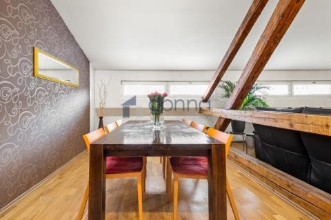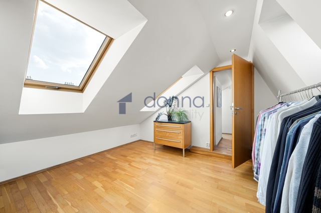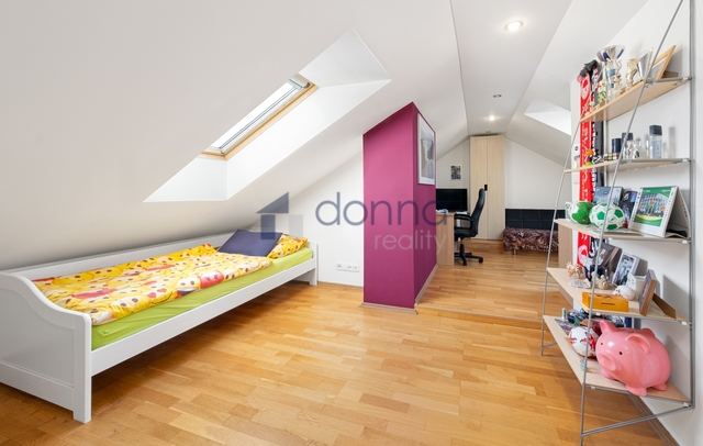 Nabízíme k prodeji zajímavý byt 4+kk s podlahovou plochou 145m2, situovaný v atraktivní lokalitě Vršovic - Praha 10, ulice Tolstého. Tento dvouúrovňový byt je umístěný ve 4. podkrovním patře s mezonetem v cihlovém domě bez výtahu a nabízí zajímavé bydlení v klidném udržovaném domě pouze se šestnácti bytovými jednotkami. Spodní patro tvoří vstupní chodba s šatní skříní, světlá členitá ložnice, koupelna s vanou a dvěma umyvadly a samostatná toaleta. Hlavní obytnou plochou je velký otevřený prostor propojující obývací pokoj s jídelní částí, prakticky navržen je i oddělený kuchyňský kout s moderní kuchyňskou linkou a spotřebiči nabízející dostatek místa pro kulinářské umění. Z této části také vedou schody do horního patra. Horní mezonetové patro nabízí 2 samostatné pokoje se střešními okny dodávající přirozené prosvětlení. Dispozice bytu nabízí praktické rozdělení jednotlivých zón i příjemnou míru soukromí. Zajímavost mu dodávají dřevěné trámy, zkosené stěny nebránící pohybu a dobře vyřešené osvětlení celého prostoru. Celoroční pohodlí - topení a ohřev vody zajišťuje vlastní elektrokotel s radiátory. Osobní vlastnictví. Měsíční náklady: 2 800 Kč včetně fondu oprav. Zálohy na elektřinu: 6 000 Kč. Bonus: příjem z pronájmu společných prostor. Vršovice patří mezi dlouhodobě velmi vyhledávanou lokalitu nabízející kombinaci městského života a zeleně. Samozřejmostí je veškerá občanská vybavenost - obchody, restaurace, školy a dalších služby, což činí život v této lokalitě velmi pohodlným. Skvělá dostupnost městské dopravy (MHD) zajišťuje rychlé spojení s centrem města. V případě zájmu o prohlídku nás neváhejte kontaktovat.