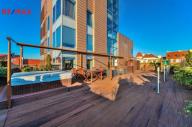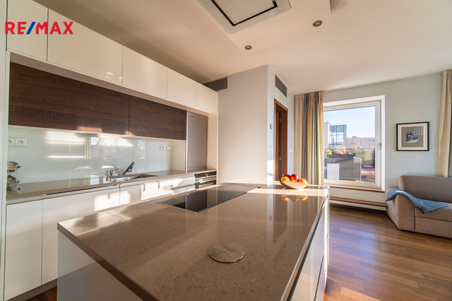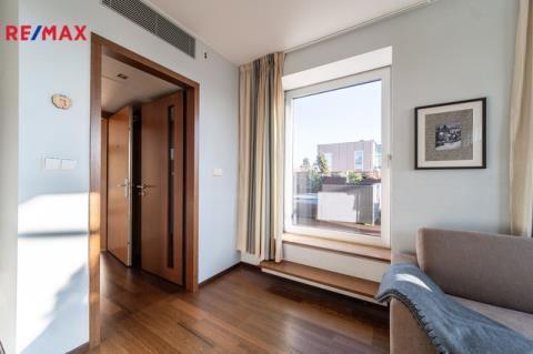 Nabízíme k prodeji unikátní bydlení v prestižním areálu Korunní dvůr na Vinohradech. Jedná se prodej celého 6. patra budovy F, které je rozděleno na dvě bytové jednotky 2+kk propojené soukromou chodbou s privátním výtahem. K této nemovitosti náleží prostorná terasa a dvě parkovací stání v podzemní garáži s elektro-nabíječkou. Flexibilní možnosti využití: • Dvougenerační bydlení se zachováním soukromí pro obě části • Kombinace bydlení ve větším bytě a pronájmu menšího 2+kk • Kombinace bydlení ve větším bytě a vlastní kanceláře v menším 2+kk • Investiční příležitost s možností pronájmu obou jednotek Popis bytů a vybavení: • Větší byt 2+kk: podlahová plocha 80 m² • Menší byt 2+kk: podlahová plocha 59 m² • Terasa: 189 m² • Celková užitná plocha činí 328 m² Oba byty jsou vybaveny moderní kuchyňskou linkou se všemi spotřebiči, designovým nábytkem a velkým množstvím vestavných úložných prostor. Každý byt má obývací pokoj, ložnici a koupelnu. Je možné je využívat samostatně nebo jako jeden propojený celek včetně terasy. K bytům patří dva sklepy a dvě parkovací stání v podzemní garáži, vybavená elektro-nabíječkou pro elektromobily. Terasa k relaxaci plná zeleně: Rozlehlá terasa o velikosti 189 m² je osazena vzrostlými rostlinami a keři, které vytvářejí klidnou přírodní atmosféru. Automatický zavlažovací systém se stará o bezproblémovou péči o zeleň. Díky poloze uvnitř areálu zde panuje klid a pohoda bez hluku z okolních ulic. Celá plocha terasy je z tropického dřeva. Na terase můžete posedět s rodinou nebo přáteli, užít si grilování nebo jen pohodový relax v luxusní výřivce. V horkých dnech se terasa zastíní automatickou pergolou. Lokalita a občanská vybavenost: Byt se nachází v žádané části širšího centra Prahy s vynikající dopravní dostupností: • Tramvajová zastávka přímo před domem • Metro Flora v pěší vzdálenosti • Obchodní centrum Flora nedaleko, s širokou nabídkou obchodů a služeb • V okolí se nachází řada restaurací, kaváren, škol a školek Díky své poloze jste v centru Prahy za pouhých 5 minut. Neváhejte a využijte jedinečnou příležitost k pořízení exkluzivního bydlení nebo investice v jedné z nejprestižnějších lokalit Prahy!