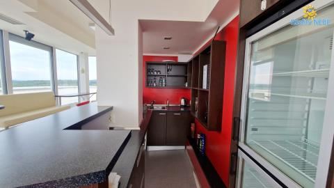 V 15. NP se nachází exkluzivní zařízený byt 2+kk (184 m2) – obývací pokoj s jídelnou, barem a kuchyňskou linkou (96 m2), ložnice s pracovnou a předsíní (48 m2 – prosklený sprchový kout, kancelářské zázemí), lodžie (14 m2), předsíň se šatnou (17 m2), koupelna s vířivou vanou (7 m2), WC (2 m2).