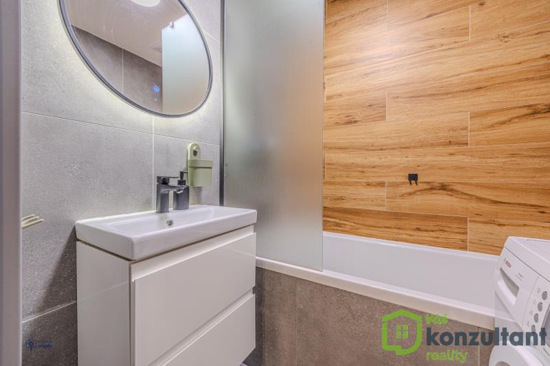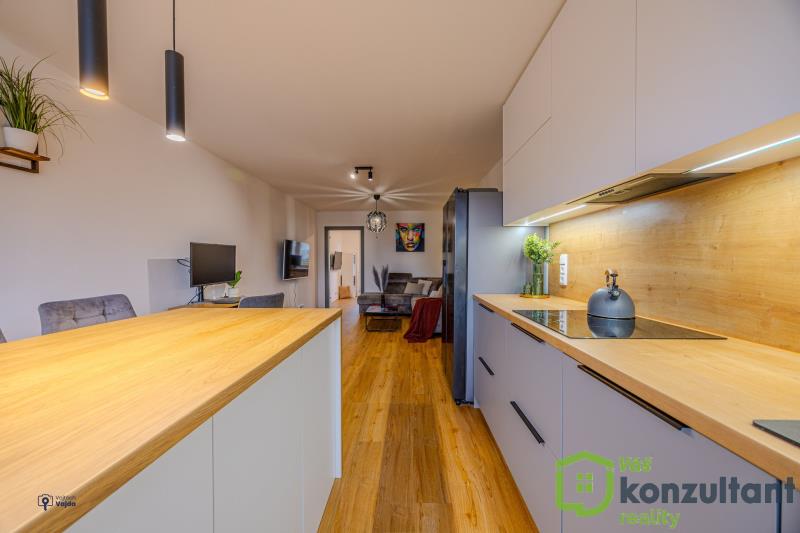 V celém bytě jsou podlahy s pokládkou z lepeného vinylu, v koupelně a na WC velkoformátová dlažba a obklady. Jádro je zděné, rozvody vody a odpadů v plastu, nová elektřina, nivelace podlah, SDK podhledy, nové omítky. Kuchyně na míru s vestavěnými spotřebiči a indukční varnou deskou, vše značky Beko, kuchyňská linka s kováním značky Blum.