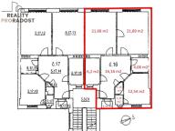 Dispozice bytu: pokoj I. 21,68 m2, pokoj II. 21,89 m2, pokoj III. 12,54 m2, obývací pokoj s kuchyňským koutem 16,16 m2, pokoj pro služku 6,2 m2, koupelna 4,08 m2, WC 1,16 m2, komora 1,34 m2, sklep 10 m2 a balkon 1,54 m2.