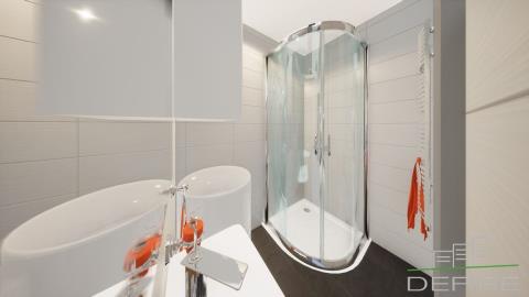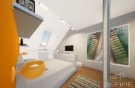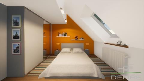 Projekt půdních bytů Světova 6 představuje nadstandardní moderní bydlení v rychle se rozvíjející lokalitě Prahy 8, Libeň, cca 3 min od metra Palmovka. V poslední době bylo v okolí Palmovky vystavěno mnoho moderních budov a bytových domů, vznikly nové restaurace, obchody a kavárny. Místo nabízí bohaté možnosti společenského, kulturního i sportovního vyžití, výbornou dopravní dostupnost a mnoho dalších výhod dnešního moderního života. Architektonické řešení projektu vychází z revitalizace cihlového domu původní městské zástavby. Součástí realizace bude i nová nástavba včetně provedení nové střechy, renovace stávajícího a výstavba nového schodiště, zřízení nového přistavěného výtahu do dvora, oprava stávající fasády a rekonstrukce hlavního napájení a měření spotřeby elektrické energie. Celý developerský projekt je inspirován současnými moderními trendy, praktickým dispozičním uspořádáním, zejména s důrazem na kvalitu a moderní design v kombinaci s použitím špičkových stavebních technologií. V rámci výstavby vznikne 5 nových bytových jednotek: 2 x byt 3+1 s balkónem na úrovni 5.NP, 1 x byt 2+kk v první úrovni mezonetového podkroví, a 2 x byt 4+kk mezonetového typu s balkónem v podkroví. Orientace pokojů je vždy na dvě strany, jihovýchod a severozápad. Všechny byty jsou světlé, slunné a svým umístěním a dispozičním uspořádáním se dostávají do vyšší kategorie jak pro bydlení, tak i pro investici. Vytápění nově vybudovaných bytů bude řešeno pro každý byt samostatně. Vytápěcí systém bude uzavřený teplovodní okruh s elektrokotlem (zdrojem tepla) a deskovými otopnými radiátory a otopnými žebříky. Systém bude pro každý byt shodný, bude se lišit pouze typem elektrokotle a velikostí otopných těles. Oběhové čerpadlo topné vody je součástí kotle. Regulace každého vytápěcího systému bude zajištěna centrálním prostorovým termostatem umístěným v referenční místnosti každého bytu v kombinaci s termostatickými hlavicemi. Byt 1.1, o dispozici 4 + kk, 96,79 m2 + balkon 7,17 m2, se nachází v 6 a 7 NP, dispozičně je byt řešen ve dvou nadzemních podlažích, přičemž základní podlaží má standardní výšky a je zde umístěn obývací pokoj, který je propojen s jídelnou a kuchyní (25,21 m2), jeho orientace je na Jihovýchod a je z něj přímý vstup na balkon (7,17 m2). Dále je v tomto podlaží 1 samostatný pokoj (12,73 m2), koupelna – jako technická místnost (2,07 m2), WC (1,4 m2), šatna (2,1 m2) a vstupní chodba (2,5 m2). Z obývacího pokoje vede schodiště do obytného podkroví kde jsou dva samostatné pokoje (11,76 m2 a 13,41 m2), koupelna (5,1 m2), galerie (6,79 m2) a podkrovní sklad s prostorem pro pračku a sušičku (9,86 m2). Zařizovací předměty, podlahy, dveře i zárubně jsou ve vysokém standardu provedení, sladěné v moderních přírodních a zemitých barvách a nejmodernějších designech materiálů. K bytu náleží také užívání sklepní kóje o výměře cca 2 m2. Dokončení projektu 6/2026. Více informací naleznete na internetových stránkách Rezidence Světova.
