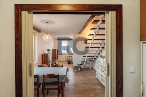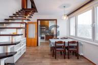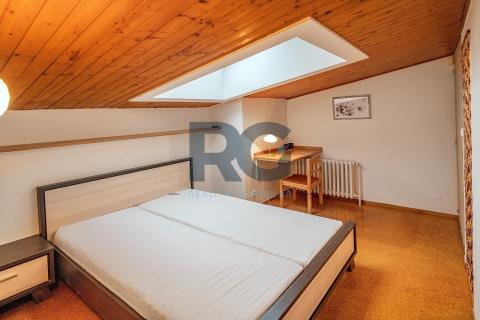 V zastoupení majitelů nabízíme k prodeji tento mezonetový byt o dispozici 5+1 s dvěma koupelnami a výměrou podlahové plochy 103 m2, který se nachází v 6. patře bytového domu s výtahem na okraji Píseckých hor, v ulici Otakara Jeremiáše. Příslušenstvím bytu je velký balkon o výměře 8 m2 s nádherným výhledem na město Písek a zděný sklep o výměře 4 m2 v suterénu domu. Byt je ve velmi dobrém udržovaném stavu. V posledních letech prošel drobnými opravami a úpravami. V celém bytě jsou nová plastová okna a nyní se jedná o revitalizaci celého domu. Byt je situovaný na jihozápad, je velmi světlý a slunný. V přízemí bytu se nachází obývací pokoj s jídelnou, kuchyně, ložnice se vstupem na balkon a dětský pokoj. Každý pokoj má samostatný vstup z chodby, žádný pokoj není průchozí. Dále je zde k dispozici technická místnost, ve které je umístěn plynový kotel a je zde místo pro pračku, koupelna s vanou a samostatná toaleta. Podkroví bytu nabízí pracovnu a jeden pokoj s vlastní koupelnou, ve které je sprchový kout. Byt je vybaven kuchyňskou linkou včetně spotřebičů (elektrická trouba, varná deska, mikrovlnná trouba, digestoř, myčka nádobí, lednice s mrazákem). Veškeré vybavení bytu je možné ponechat. Vytápění a ohřev vody je zajištěn vlastním plynovým kondenzačním kotlem. Dům se nachází v atraktivní lokalitě na okraji sídliště "Logry". V těsné blízkosti domu je dětské hřiště, škola, školka, samoobsluha i autobusová zastávka. Okolo domu je dostatek parkovacích míst. V případě potřeby by bylo možné přikoupit i garáž kousek od domu. Garáž je napojena na elektřinu.