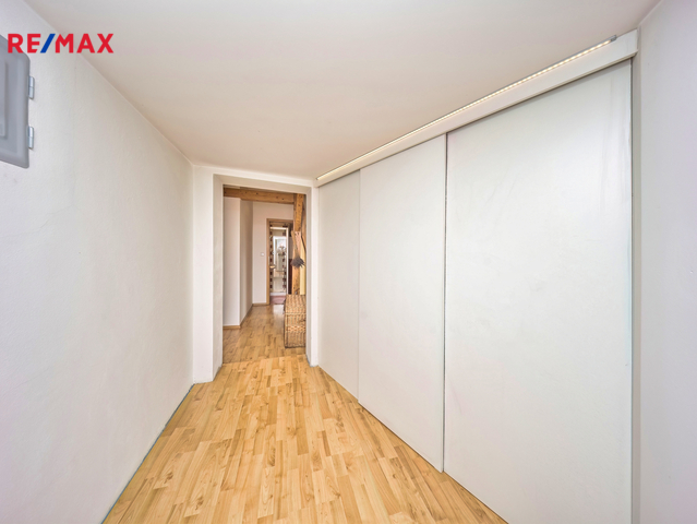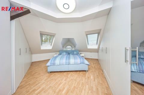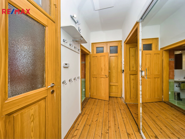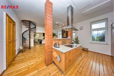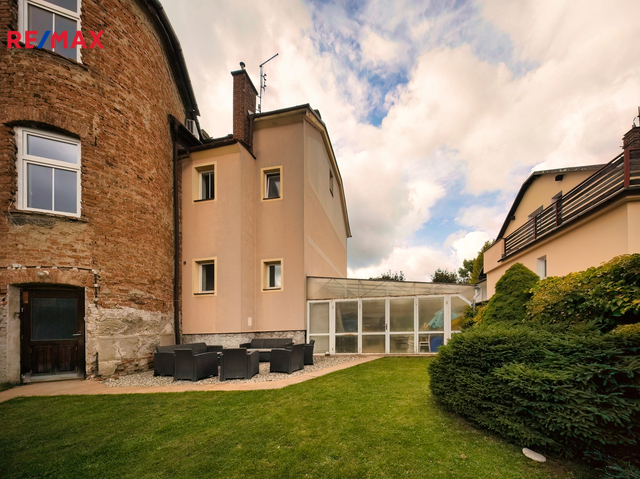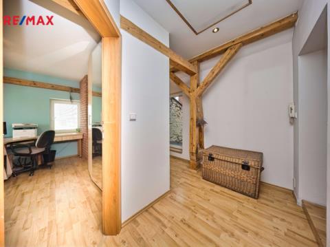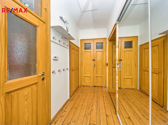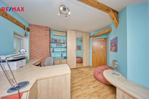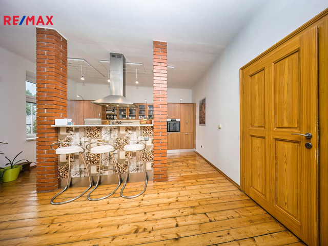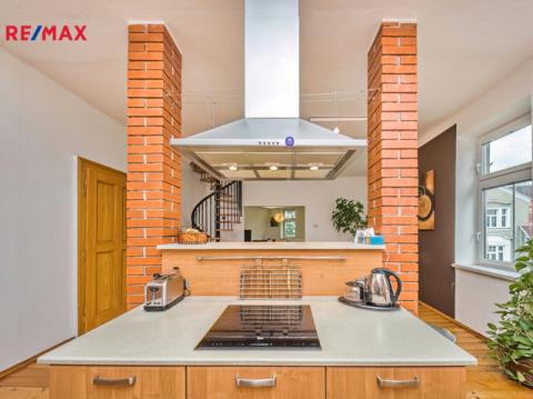 Nabízíme k prodeji mezonetový byt 5+1 s krytým parkovacím stáním, zahradou ve společném užívání (s vyhrazeným soukromým prostorem), terasou a sklepem v osobním vlastnictví o celkové evidované podlahové ploše 189 m². Byt se nachází ve 2. a 3. nadzemním podlaží (z celkem 3 NP) cihlového domu z roku 1919 bez výtahu.