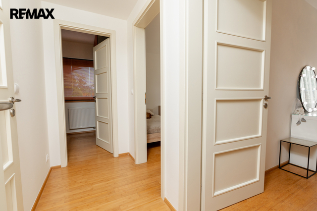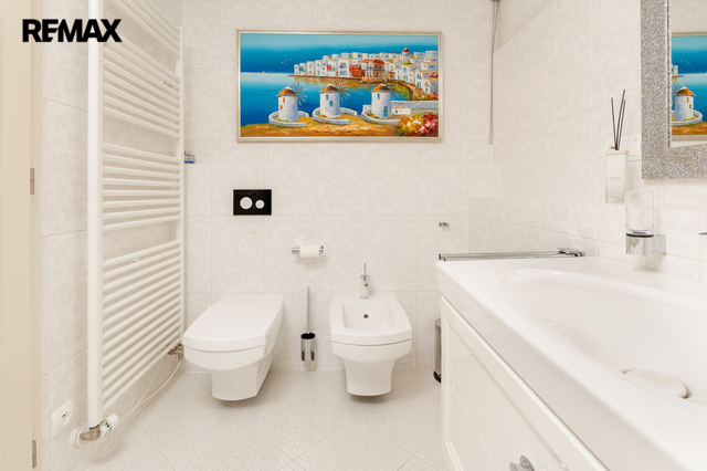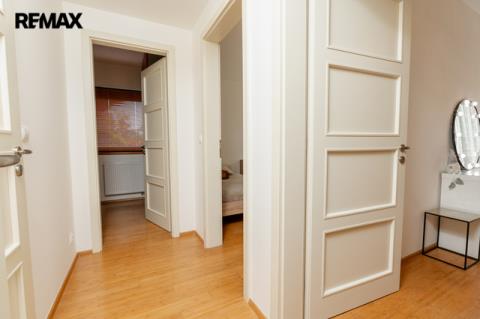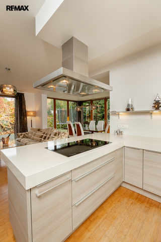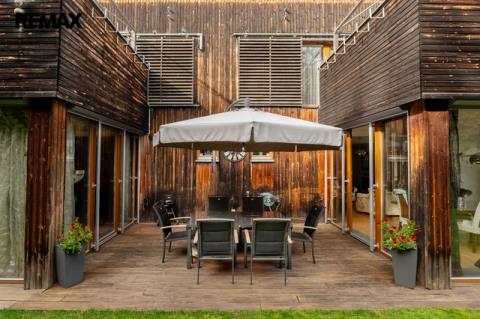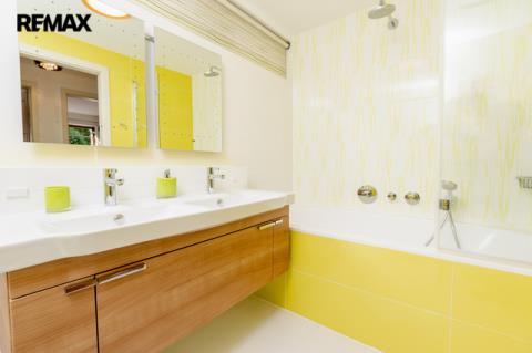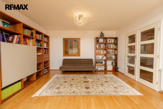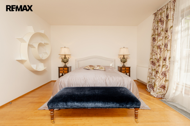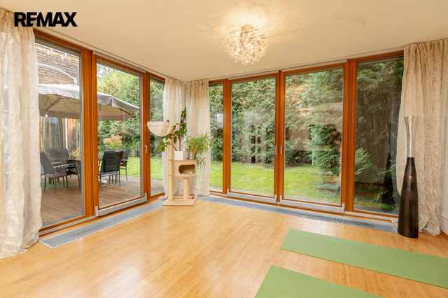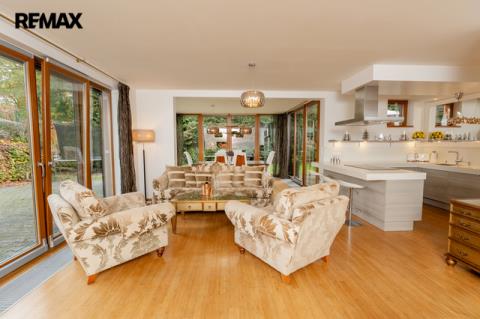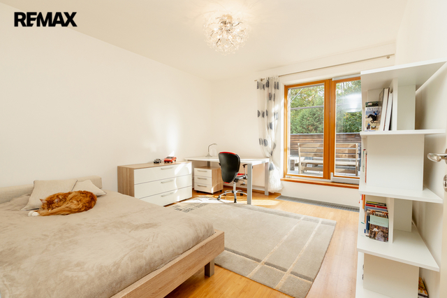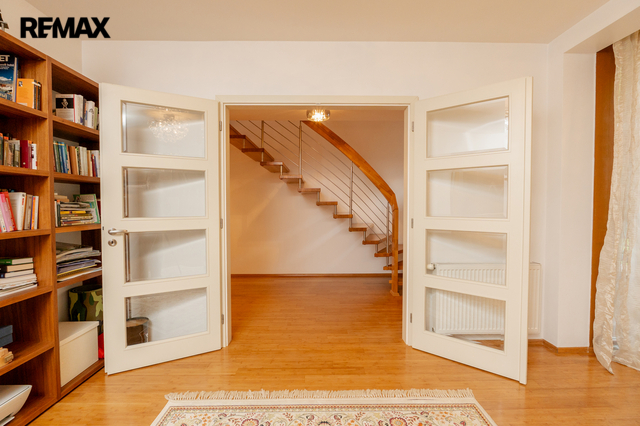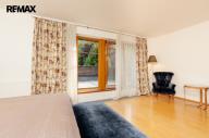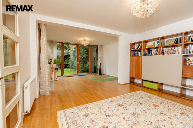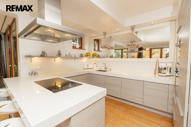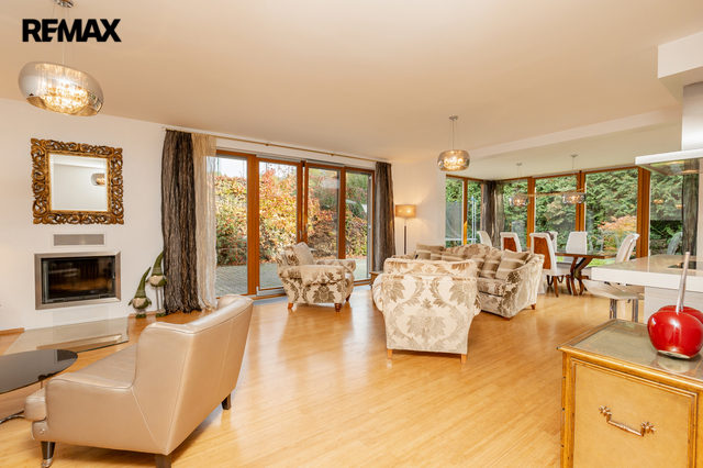 Součástí obytné části je designová kuchyň značky Poggenpohl, vybavená veškerými vestavěnými spotřebiči. Velká francouzská okna zajišťují dostatek denního světla a dodávají interiéru vzdušnost a eleganci.